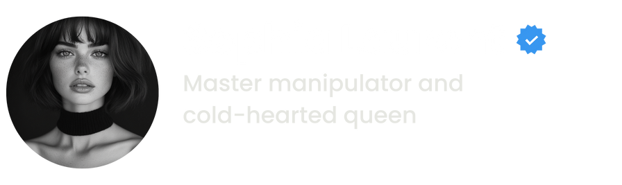 Created by Sophia Laurent – ex-doormat turned man-eater, relationship assassin, and woman who went from pathetic mess to certified bad b**ch after being cheated on and discarded. She's helped more than 12,000 women transform their pain into ultimate power...